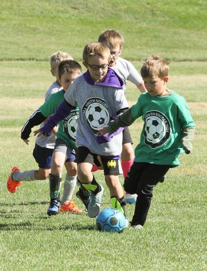 Soccer goals are left out on the fields through the summer for those interested in playing pickup games. Sidelines and penalty boxes are not marked as the goals will be moved occasionally to prevent wear spots from developing in the goal areas.
