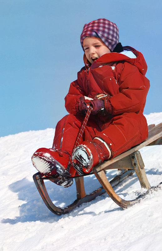 5. Never sled in the prone (face down) position, which increases the risk of head and abdominal injuries. The child’s head should always be at the back of the sled.