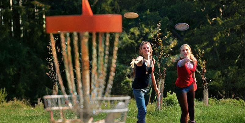 An 18-hole disc golf course is available free of charge in CAM-PLEX Park. The front course begins at Shelter #6 with the tee pads and baskets spread out through the trees east of the main park area. The back-course heads east from Shelter #6 and curves back around to the south and west through the open meadows before heading back to the parking area. A map of the course and score card is available at: https://campbellcountywy.gov/discgolf