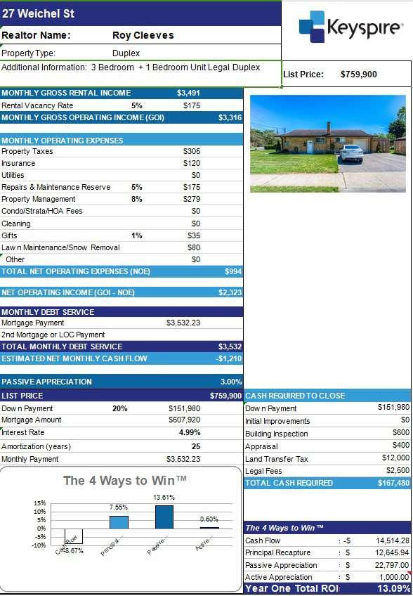 Public: Stable Income & Growth Potential in Kitchener. Make an offer on this well-priced 5-plex, currently generating $61,000 annually with a solid 5% cap rate, presents a rare opportunity for investors looking for more than just a standard duplex or triplex. Located in a highly sought-after area of Kitchener, this property offers both stable income and the potential for substantial equity growth through strategic upgrades, rental increases, and possibly adding another storey. With convenient access to Hwy 7, Bridgeport Rd, and University Ave, this property ensures easy commutes for tenants, reducing vacancy concerns and enhancing long-term rental demand. The unit mix, featuring two 2-bedroom units and three 1-bedroom units, caters to a variety of tenant profiles, increasing flexibility and occupancy potential. For savvy investors, this property presents an attractive blend of current cash flow and future appreciation, making it a competitive investment with more upside than other multi-unit properties that are currently available. Schedule a tour today and explore the possibilities of turning this 5-plex into a high-performing asset in your portfolio.