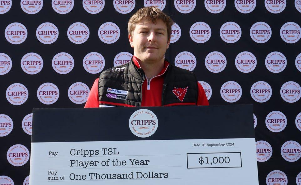 all players for clearances, second in contested possessions and sat in the top 10 for inside 50s, hit outs and goal involvements. Votes for the Cripps Player of the Year were cast by Tasmania’s media after each match of the 2024 TSL season.