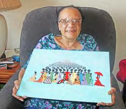 Family and community have always been a priority for Martin – her sister owns fve of her paintings, and her late husband always supported her creativity. Her grandmother inspired her to participate in her neighborhood and is responsible for Martin’s love of people. The mother of three sons, she says that she always wanted a daughter to pass her knitting, sewing, crochet, drawing, and painting skills to. Today, she is proud to have three grandsons, a granddaughter, and twin great granddaughters.
