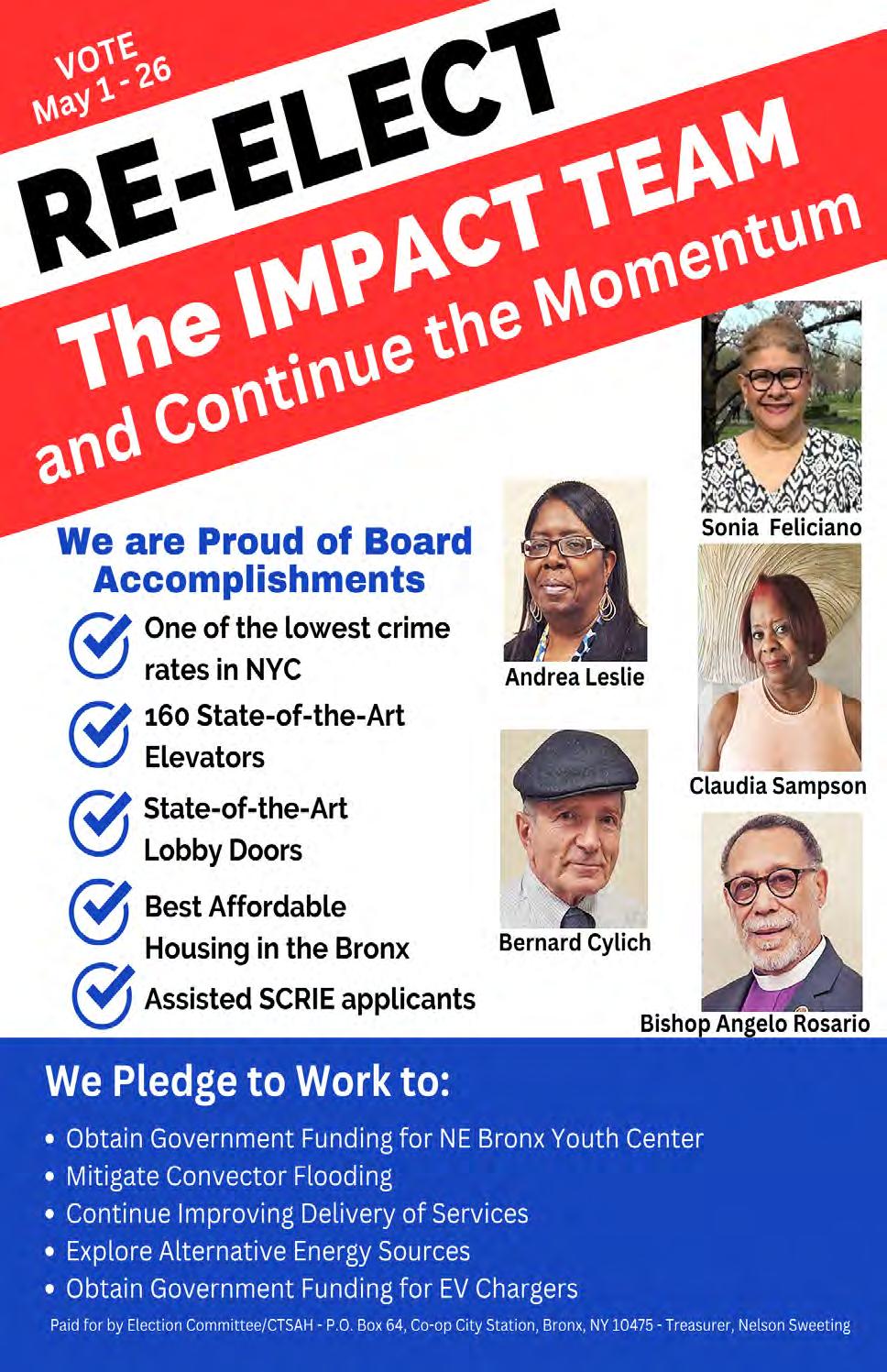 Of major importance is studying and selecting your choices for our next Board of Directors. The most important thing is vote. That is your responsibility as a Co-op City shareholder in this Mitchell-Lama middle-income housing development, and they have made it so easy for you, mail it in, or vote online.