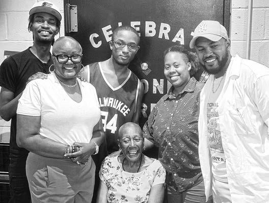 Top: Yvonne with her certificate & flowers; Center: Yvonne with three generations of her family; Bottom photo (L-R): Sonia Feliciano and Bob Bieder, Executive Members of the 45th Pct. Community Council; Honoree, Yvonne Burrus; John Doyle, Exec. Board Member of the 45th Pct. Community Council; Deborah Henry, Linda Collins and Khalil Abdul-Wahhab of CERT.