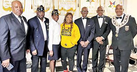 In upper Manhattan later that same day, Commander Codrington and Service Officer Davis accepted a generous donation from M.W. Grand Lodge of New York F.A.A.Y.M.P.H.O., led by Hon. Grand Master Jerome L. Rice. Our Post was honored to attend the charity donation portion of their 67th June session entitled, “Restoring Integrity, Respect, Faith & Charity to the Craft,” commemoration (photo below). Pictured above left are Legionnaires Codrington and Davis, flanked at right by Grand Master Rice, and to the left, Mary A. Brown, Past Grand Worthy Matron accepting the Charity Donation, and US Armed Forces Veterans who are members of this fellowship, and also in attendance.
