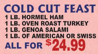 28 Co-op City Times / August 5, 2023 Most cars & light trucks. No other discounts apply. Must present coupon to get this price. Offer expires9/30/2023. BATTERY REPLACEMENT THE INSTALLATION OF ANY DELCO BATTERY $10OFF REGULAR PRICE (718)994-9600 3525 CONNER ST | BRONX, NY 10475 www.co-opcitytire.com Hours: Mon-Fri 8am-6pm Sat 8am-5pm Nitrogen Inflation Preventive Maintenance Starting, Charging & Batteries Steering & Suspension Systems Tire Pressure Monitoring System Tire Services Transmission Repair Vehicle Inspection Wheel Alignment Wheel Services & More! We Perform All These Automotive Services Axle, CV Joint & Driveshaft Repair Belts & Hoses Brake Repair Climate Control Systems Cooling System Repair Diesel Engine Repair Differential Repair Electrical Systems Engine Diagnostics Four Wheel Drive System Lube, Oil & Filter Mufflers & Exhaust STOP IN NOW FOR GREAT SAVINGS! Most cars & light trucks. No other discounts apply. Must present coupon to get this price. Offer expires9/30/2023. FRONT DISC BRAKE SPECIAL FREE BRAKE CHECK WITH COUPON $10OFF REGULAR PRICE Most cars & light trucks. No other discounts apply. Must present coupon to get this price. Vehicles requiring synthetic or diesel oil & filter may be extra. Additional charge for shop supplies and disposal fee may be added. Offer expires 9/30/2023. Lube, oil change & new filter (up to 5 quarts major brand oil) Top off fluids under the hood Complete tire rotation Inspect brake pads Adjust tire pressure to manufacturer’s specs Check tread depth on all 4 tires *Subject to credit approval. Terms and conditions apply. See store for details. BY ONLINE OR MAIL-IN REBATE ON A SET OF 4 SELECT GOODYEAR® OR KELLY® TIRES WHEN YOU USE THE GOODYEAR CREDIT CARD $200 SUMMER CAR CARE SPECIAL $6995 HORMEL DELI HAM $5.99lb. GENOA SALAMI $6.99lb. BELGIOIOSO PROVOLONE $6.99lb. LAND O’LAKES AMERICAN CHEESE......$5.99lb. McCADAM MUENSTER CHEESE $6.99lb. THIS IS INSANE! 6 lbs Chicken (2) 2 lbs Italian Sausage 1 lb Chicken Cutlets 2 lbs CC Pork Chops 2 lbs Chuck Chop ALL THIS FOR $4999 3 FAMILY PACK 1 lb Chicken Cutlets 3 lbs Spare Ribs 2 pkg Sabrett Franks 3 lbs Chicken Legs 2 lbs Italian Sausage ALL THIS FOR $4999 4 HORMEL BLACK LABEL BACON $999lb 1st lb. 2nd lb. FREE! HOURS: Mon. - Sat.: 7 a.m. - 7 p.m.; Sun.: 9 a.m. - 5 p.m. MEAT•DAIRY SEAFOOD•DELI PRODUCE GROCERY PAPER GOODS the Highest Quality Foods! SEAFOOD JUMBO SHRIMP Cooked (16-20ct.)............$12.99lb COOKED SHRIMP Large (31-40ct.)............$11.99lb BABY LOBSTER TAILS 1oz. Avg. .............$2.99each 2oz. Avg. .............$4.99each MEAT RIB STEAKS $19.99lb WHOLE FILET MIGNON (5-6lb. Avg.) Custom Cut into Steaks or Roast...............................$19.99lb CENTER CUT PORK CHOPS $4.99lb Not responsible for typographical errors. Prices subject to change without notice. Marinated Meat And Seafood Available! JUMBO SHRIMP ON ICE (Raw 16-20ct.) $999 1st lb. Get 2nd lb. for $5! NO TIME? LET US SHOP FOR YOU! • Same-Day Service • Pick-up or Delivery • 7-Days a Week • Curbside Available SALMON $1499lb BBQ FEAST 3 lbs Spare Ribs 3 lbs Chicken Breasts 2 pkg Sabrett Franks 3 lbs Chicken Legs 2 lbs Sausage 3 lbs Chuck Chop ALL THIS FOR $6999 7 SABRETT 30 All Beef Franks 24 Hot Dog Rolls 12 oz. Mustard 2 lb Saurkraut 1 lb Sabrett Onions 14 ALL THIS FOR $3499 ALL MARINATED! 5 Chicken Kebobs 5 Pork Kebobs 3 lbs Boneless ighs 3 lbs Jumbo Party Wings 3 lbs Spare Ribs 3 lbs Sirloin Beef 12 $12999 ALL THIS FOR CHUCK & BRISKET BLEND BEEF BURGERS 99/pk CADILLAC PLAN 2 lbs Each: Chuck Filet • Prime London Broil Chicken Cutlets • Beef Stew Shell Steak • Club Steak Chicken Legs • Chicken Breasts Chuck Chop • Sausage CC Pork Chops 10 ALL THIS FOR $15999 MEAT PLANS – PERFECT FOR A BARBECUE! Your Neighborhood Butcher Here 7 Days a Week! 1554 Paulding Avenue, Bronx NY 10462 718-892-7798 JUMBO SNOW CRAB LEGS $1999lb