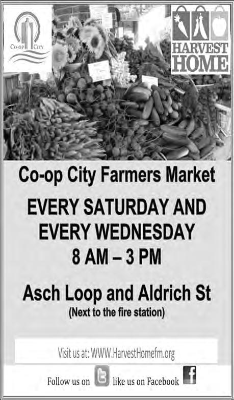 The Harvest Home Farmer’s Market at Asch Loop & Aldrich Street is now available on Wednesdays and Saturdays, 8 a.m.-4 p.m. until November 22. Stop by and support local farmers. For more information, visit www.HarvestHomefm.org.