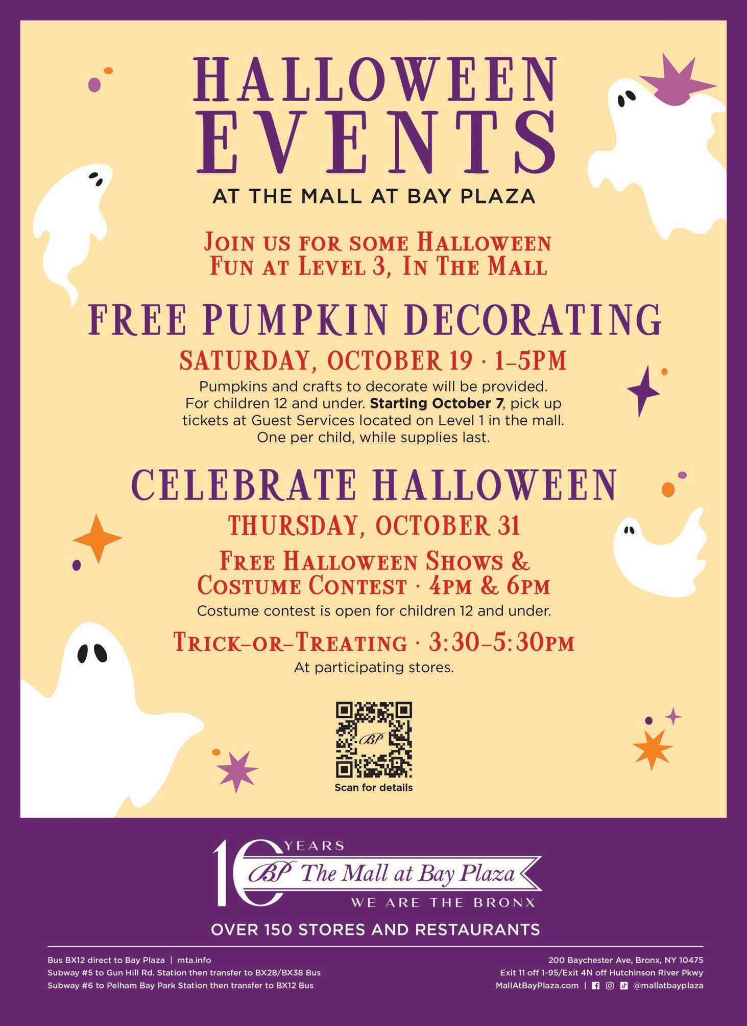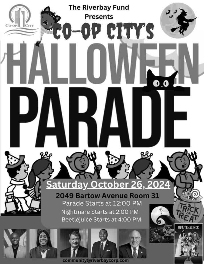 Get ready for a spook-tacular time! Come to Bartow, room 31 Saturday, Oct. 26, at 12 p.m. for a Halloween Parade filled with costumes, candy, and community fun! The parade will be followed by two movie showings, “The Nightmare Before Christmas” at 2 p.m. and “Beetlejuice” at 4 p.m. For more information, contact community@ riverbaycorp.com.