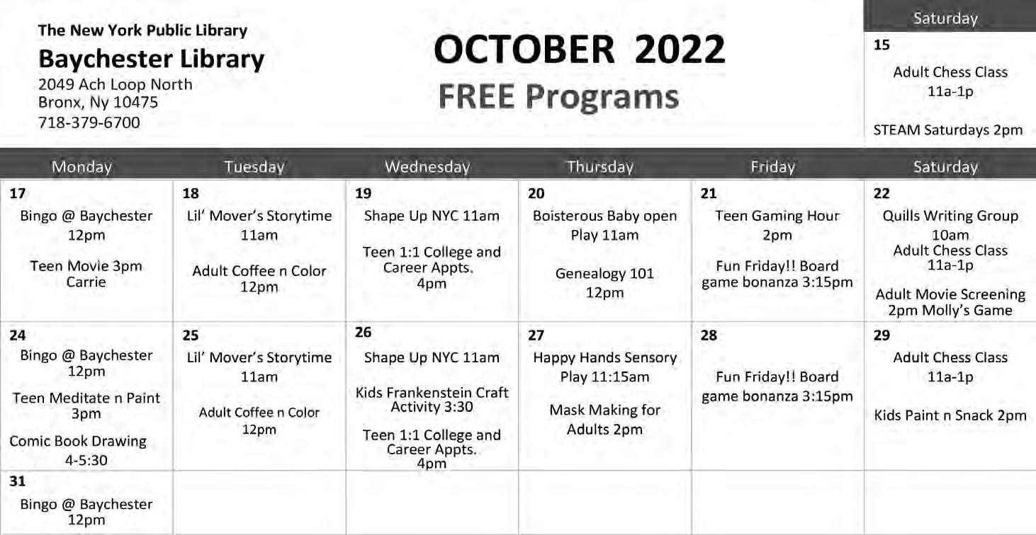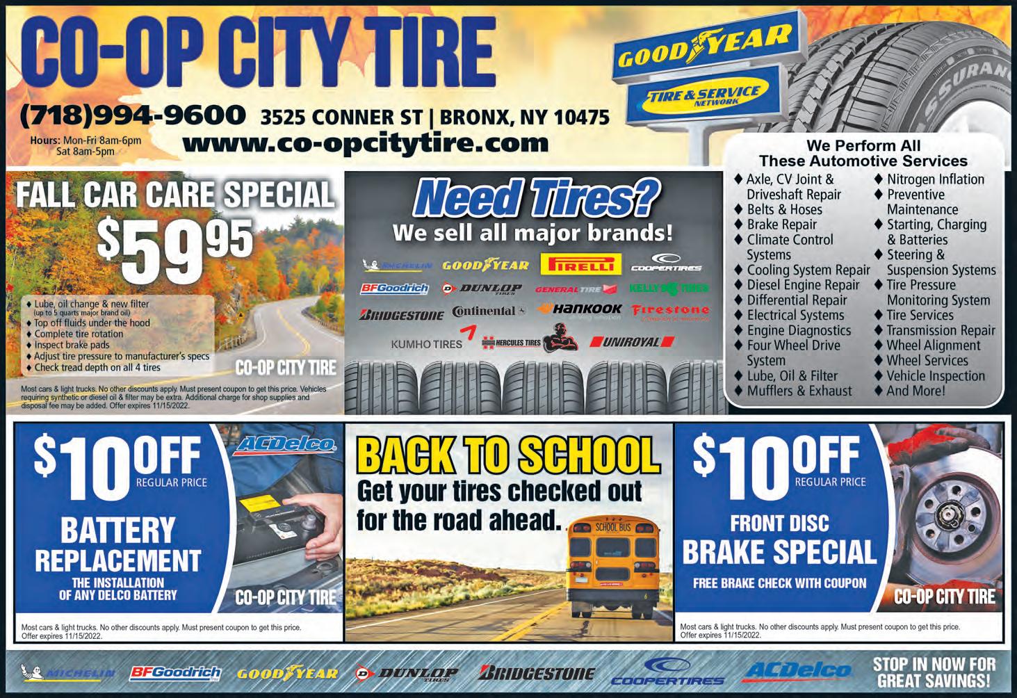 of the month. The bus only makes one stop in Co-op City: between 10:30 a.m. and 3 p.m. by the Bartow Mall on Co-op City Boulevard.