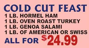 36 Co-op City Times / October 29, 2022 WEEKLY SPECIALS! MEAT • SEAFOOD • DELI • GROCERY Same Day Service • Delivery Available • Pick-up In Store or Curbside 7-Days a Week SEAFOOD JUMBO SHRIMP ON ICE (16-20 ct..)......................................$9.99lb JUMBO SHRIMP (16-20 ct.).$12.99lb COOKED SHRIMP Large (31-40 ct.)............................$11.99lb BABY LOBSTER TAILS 1 oz. Avg. .......................................$2.99each 2 oz. Avg. .......................................$4.99each SWAI FILET (5-7 oz.) $4.99lb 45 Years of Serving the Highest Quality Foods! Not responsible for typographical errors. Prices subject to change without notice. Hours: Mon. - Sat.: 7 a.m. - 7 p.m.; Sun.: 9 a.m. - 5 p.m. Marinated Meat And Seafood Available! S A V E S A V E S A V E S A V E FREE Dozen Eggs with any Meat Plan! S A V E VARIETY PACK 2 lbs Chicken Cutlets 2 lbs Spare Ribs 2 lbs CC Pork Chops 2 lbs Beef Stew 2 lbs Chuck Chop ALL THIS FOR $59991 HERE’S THE BEEF 2 lbs London Broil 2 lbs Chuck Filet 2 lbs Beef Stew 2 lbs Sandwich Steak 2 lbs Chuck Chop ALL THIS FOR $69992 THIS IS INSANE! 6 lbs Chicken (2) 2 lbs Italian Sausage 1 lb Chicken Cutlets 2 lbs CC Pork Chops 2 lbs Chuck Chop ALL THIS FOR $49993 FAMILY PACK 1 lb Chicken Cutlets 3 lbs Spare Ribs 2 pkg Sabrett Franks 3 lbs Chicken Legs 2 lbs Italian Sausage ALL THIS FOR $49994 BEST OF EVERYTHING 1 Top Rnd London Broil (1”) 3 lbs Beef Stew 2 lbs Chicken Cutlets 3 lbs CC Pork Chops 2 lbs Sirloin Chopmeat ALL THIS FOR $55995 5 PEOPLE CAN EAT FOR 5 DAYS 3 lbs Shell Steak 3 lbs Beef Stew 3 lbs CC Pork Chops 6 lbs Chicken (2) 3 lbs Chuck Chop ALL THIS FOR $109996 MEAT PLANS – STOCK UP AND SAVE! MEAT GROUND BEEF (5lb.)......................................$3.99lb PORK CHOP (Center Cut)...............................$3.99lb BIG G ITALIAN SAUSAGE (5lb. Pk.)...$4.99lb PORK SPARE RIBS (Light)..........................$4.99lb PRIME EYE ROUND $6.99lb PEPPER STEAK $9.99lb DELI BUY ONE GET ONE FREE ITALIAN DRIED SALAMI SLICED HORMEL PEPPERONI SLICED BUY 1lb. GET 1/2lb. FREE VIRGINIA HAM HONEY HAM