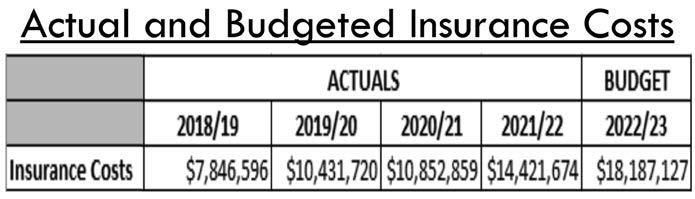 A slide depicting actual and budgeted cost for insurance was also provided which demonstrates how dramatically the cost of insurance has risen since 2018 for the Riverbay Corporation.