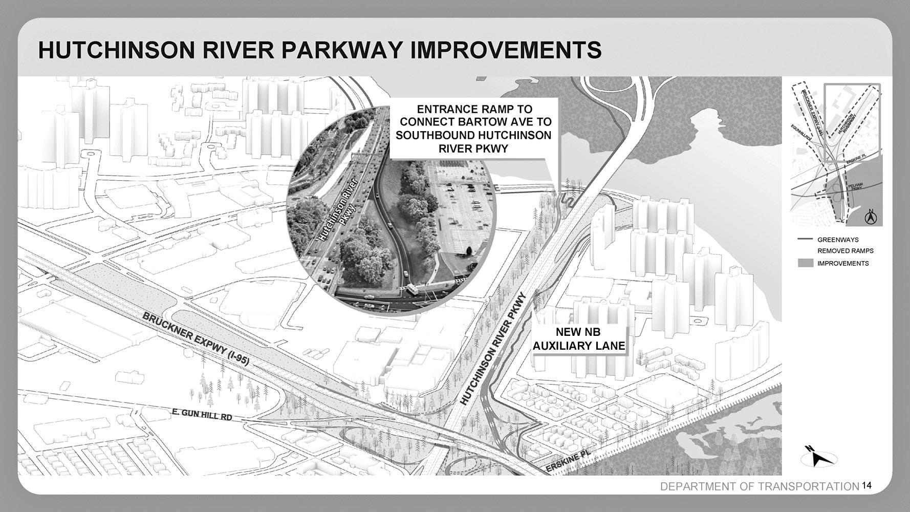 Among the key points of the redesign, is a new entrance from Bartow Avenue to the southbound Hutchinson River