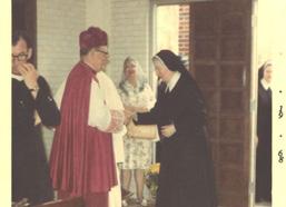 The Sisters knew that a new retirement center was needed and worked diligently to raise the funds to build one. At last, in 1954 it was announced that a new home for the retired Sisters, St. Joseph’s Convent, would be built on the Motherhouse property near what is now the intersection of Hildebrand Ave. and US Hwy 281. The building was dedicated in the summer of 1955 and retired Sisters ranging in age from 59 to 94 came from St. Francis Home and the Motherhouse in wheelchairs, walkers, ambulances, automobiles, and even the Incarnate Word High School bus, to move into their new home.