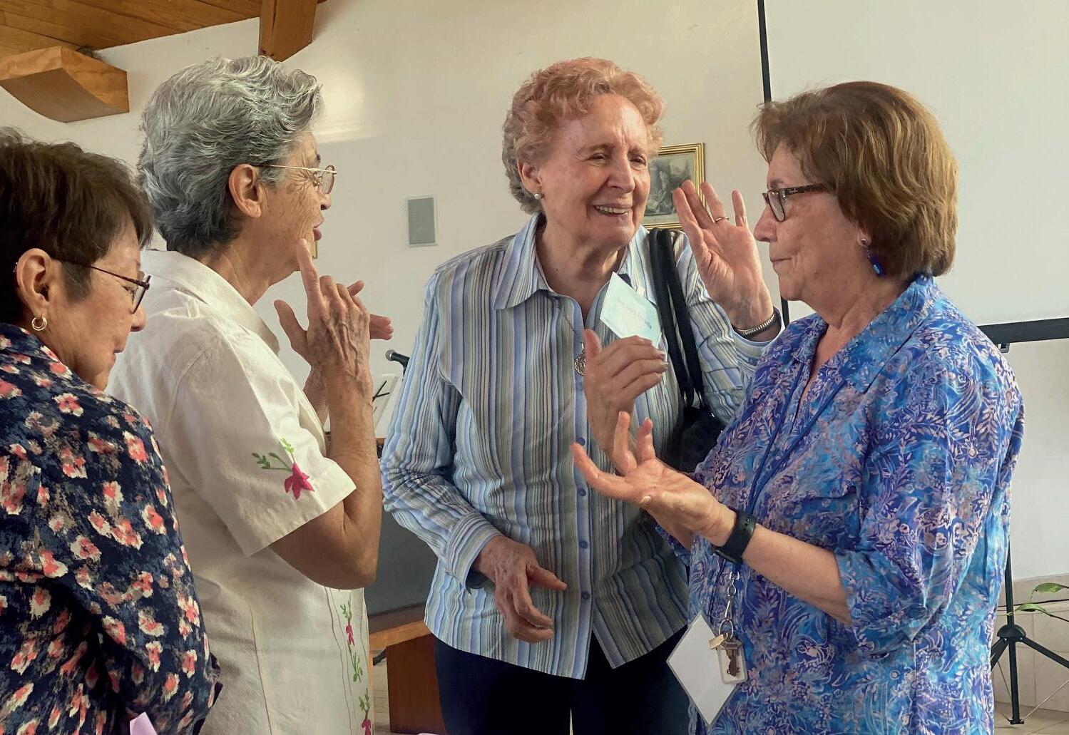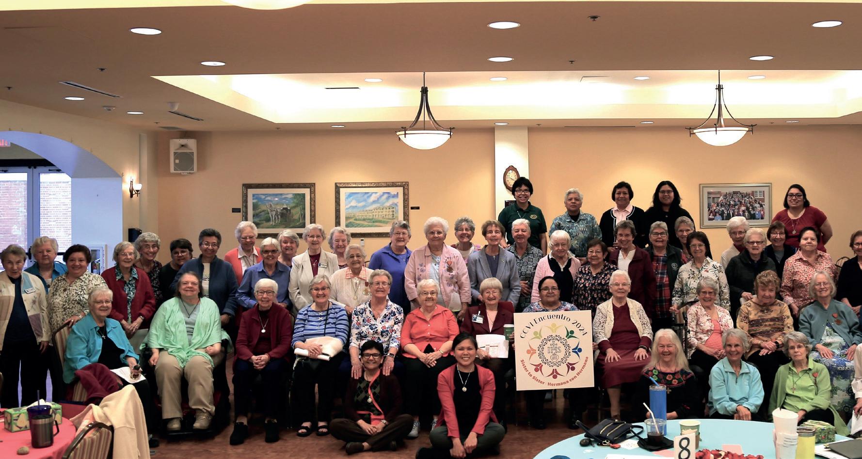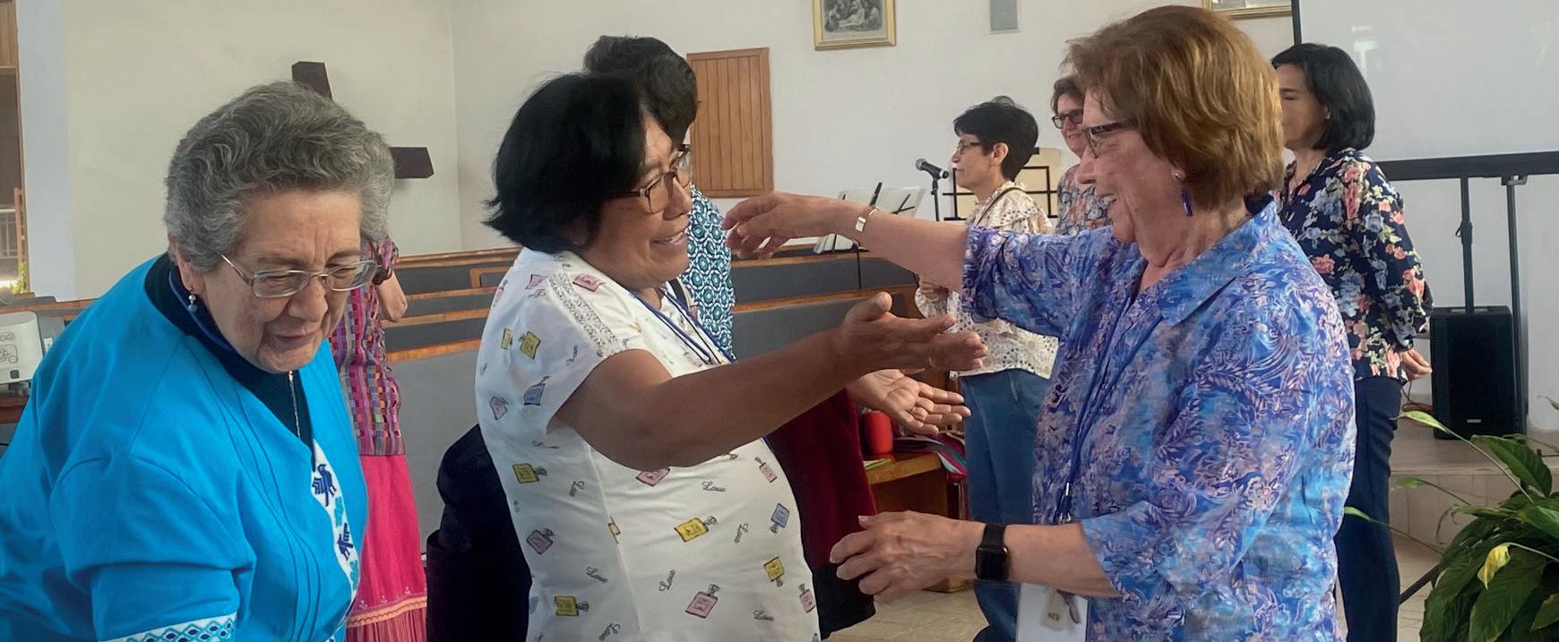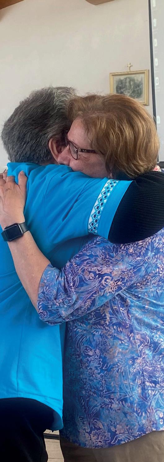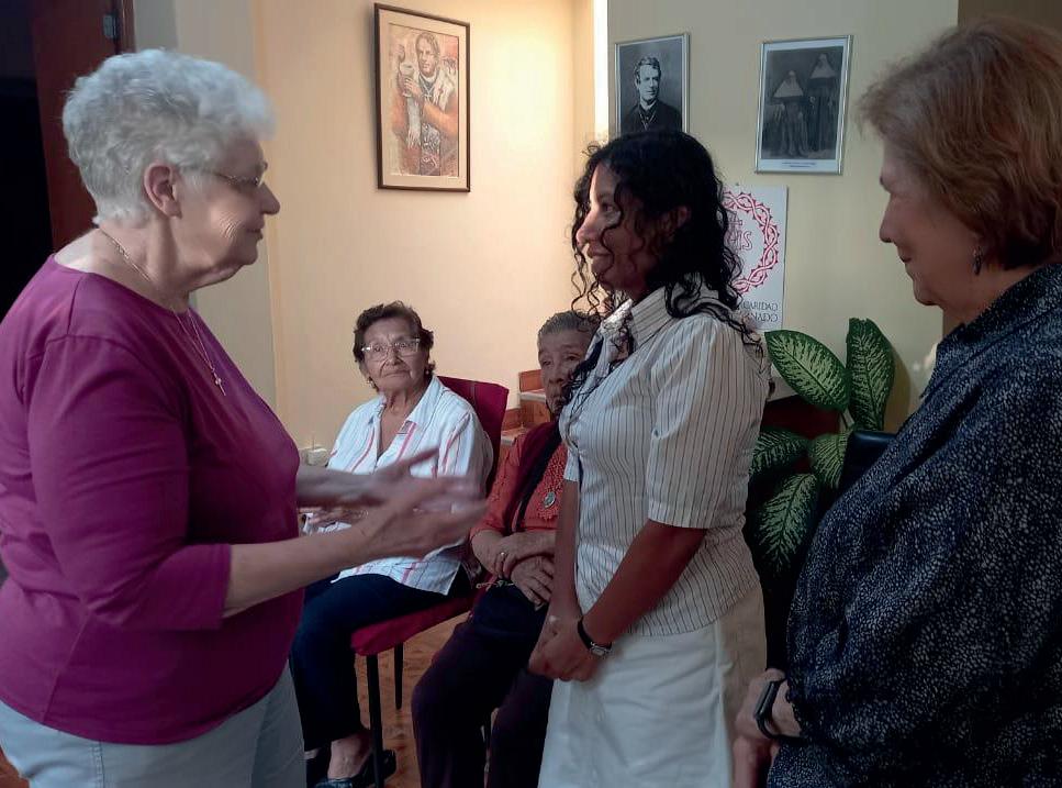de la Congregación por vivir la Presencia y la Comunión. Las Hermanas expresaron de manera constante su deseo de permanecer conectadas, informadas y comprometidas. Los Grupos de Vida y Misión continuaron siendo espacios vitales de reflexión, discernimiento y apoyo mutuo. Los encuentros comunitarios, las oraciones en los funerales y los momentos de transición se convirtieron en oportunidades sagradas de acompañamiento, marcadas por la ternura, la sabiduría y la escucha atenta.