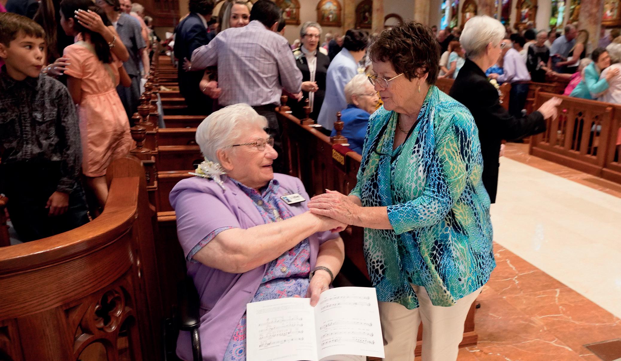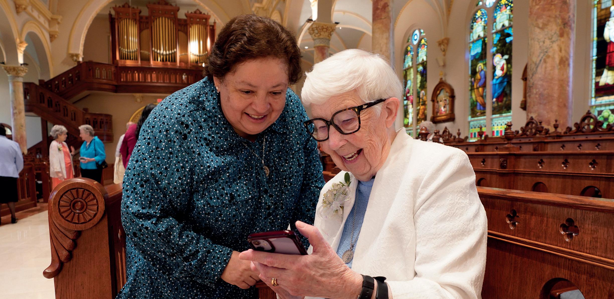 ¡Sin importar la edad, nuestras Hermanas se cuidan unas a otras! En nuestros centros de retiro, comunidades locales y Hermanas viviendo independientemente, las Hermanas se esfuerzan por realizar acciones sencillas y, en ocasiones, complejas unas por otras. El EGL fue testigo directo del acompañamiento entre Hermanas: transportación, llevando refrigerios a quienes están en unidades de enfermería, celebrando ocasiones especiales, orando individualmente y en pequeños grupos, trasladando a Hermanas, acompañando