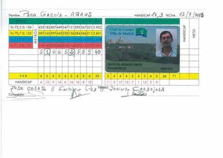 Sub-18 y subcampeón del mundo júnior. Abonado del Club de Campo Madrid, 17 de mayo de 2000