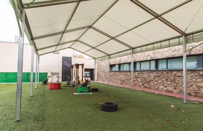 - Carpa del patio del edificio de piscina y gimnasio.