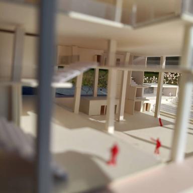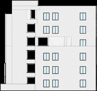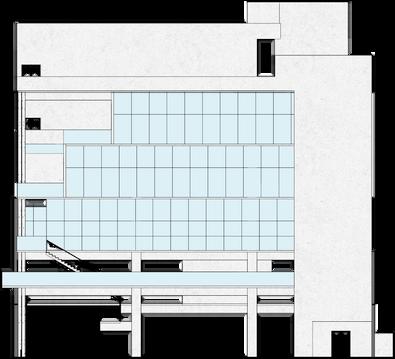 摺疊牆面形成空間,部分牆面變成透明窗採光,結合 盒子的分割錯位。