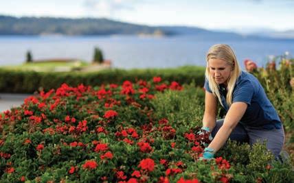 Every spring, a team from The Coeur d’Alene Resort plants 32,000 tango red geraniums, a tradition that brightens the town all summer long.