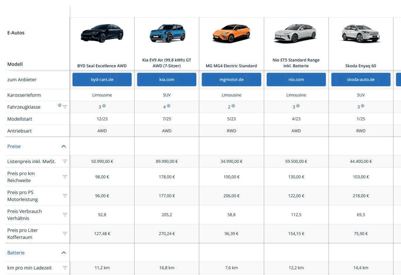 Preis-Leistungs-Check: Diese Stromer überzeugen in ihren jeweiligen Fahrzeugklassen