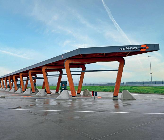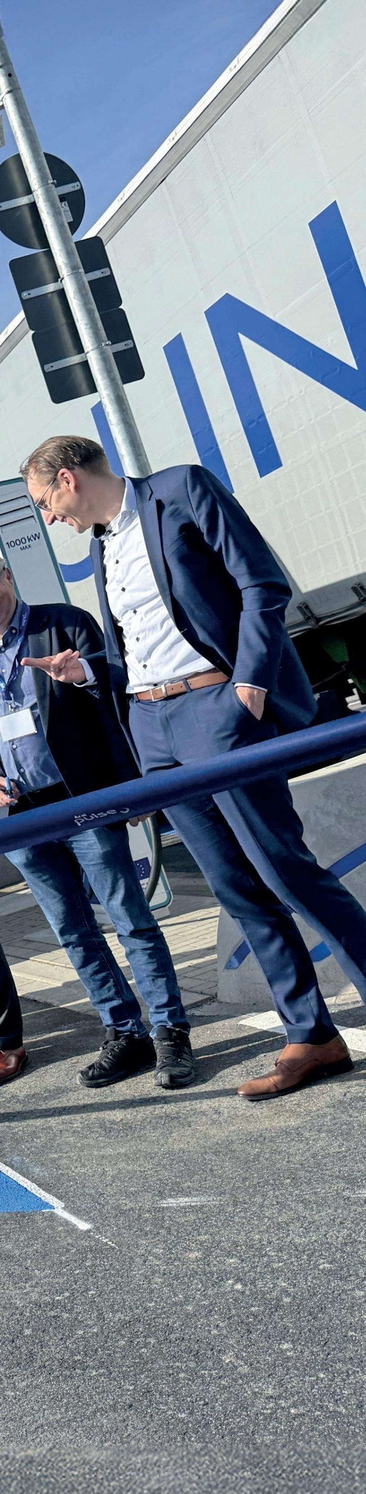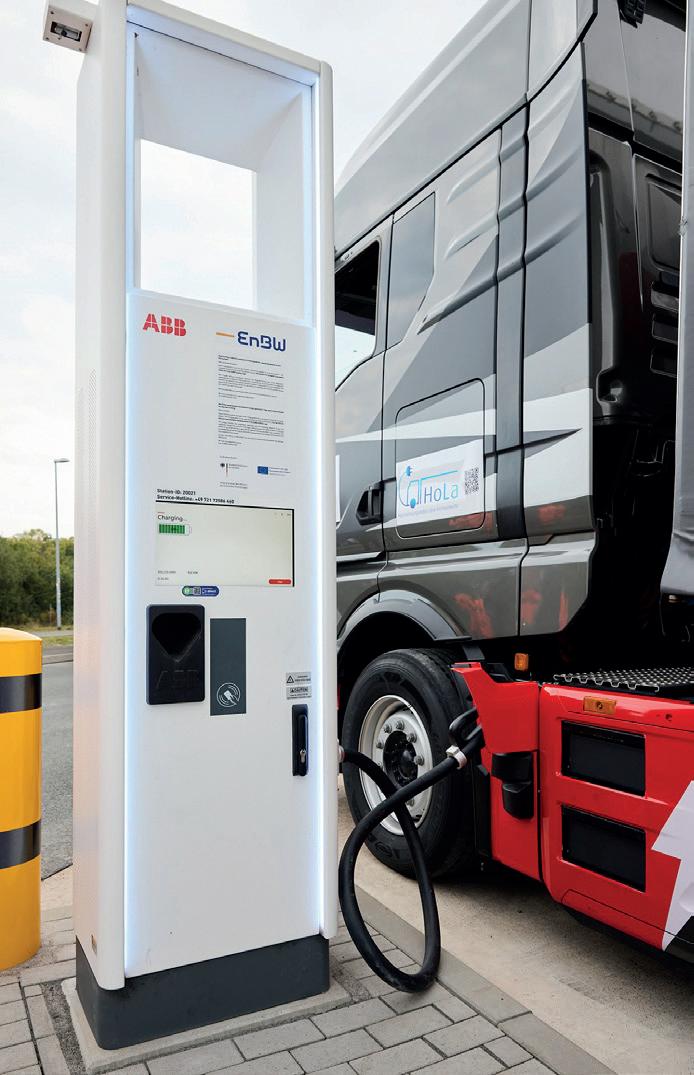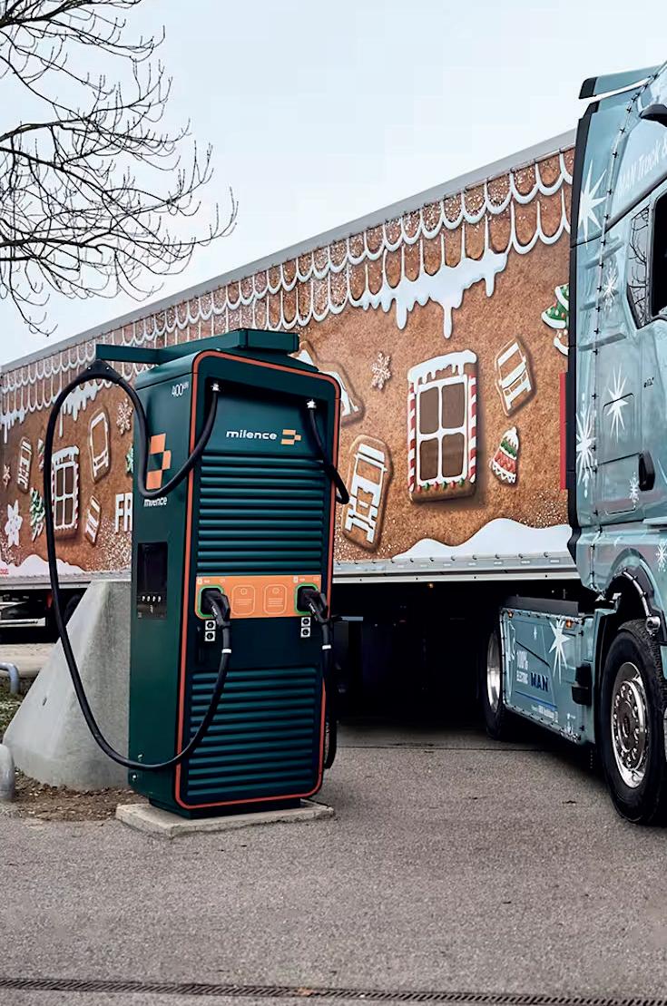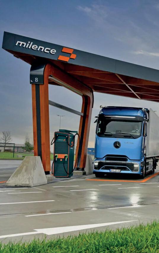 Auch für die Elektrotrucker zählt das möglichst angenehme Drumherum, das den professionellen Ladestopp zu einem Gute-Laune-Faktor macht. Die Megawattsäulen sollten mit dem 40-Tonner jederzeit einfach gefahren werden und die entsprechend groß dimensionierten Ladebuchten am besten frühzeitig reserviert werden können. Der obligatorische Gang zum stillen Örtchen, die Dusche, ausgewogenes Essen und ein bisschen Einkaufen vielleicht. Eine kleine sportliche Einheit nach den Stunden im LkwSitz? So kann die Langstrecke im batteriegetriebenen Lastzug auch für den Fahrer optimiert werden.