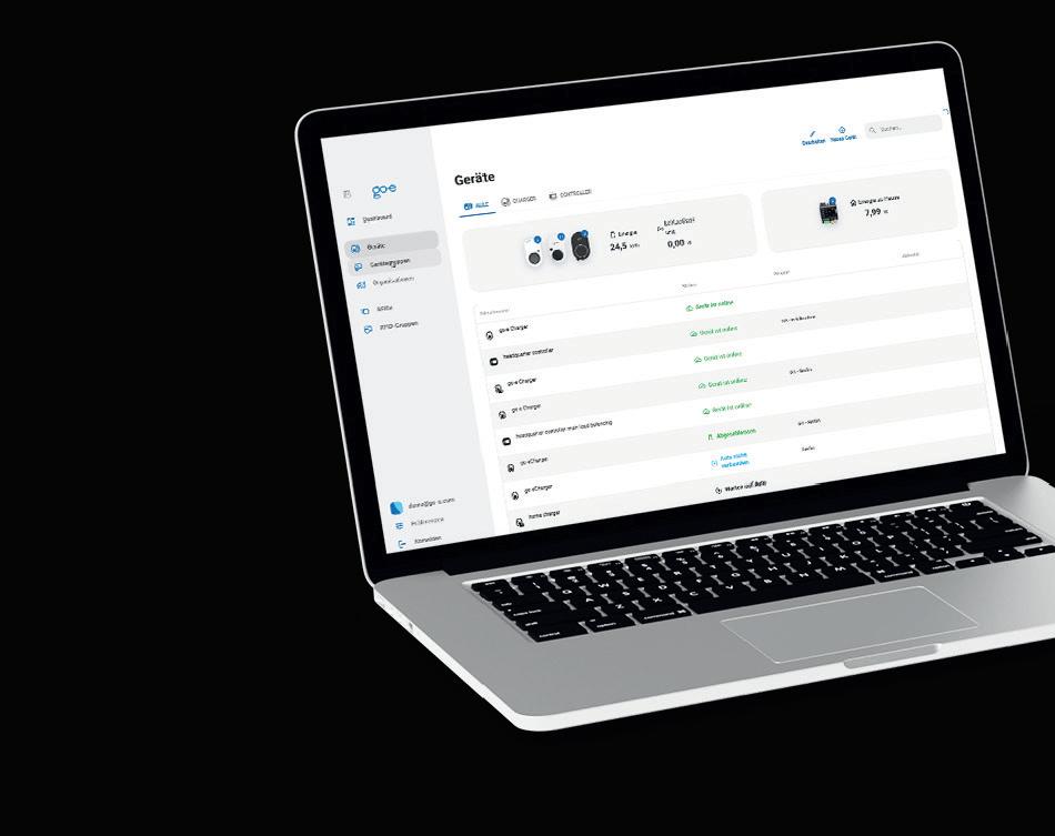 Skalierbar durch schnelle Installation an jedem Standort (IP66) sowie einfache Einrichtung. Benutzer-, Gruppen- und RFID-Management über kostenloses Backend (go-e Portal).