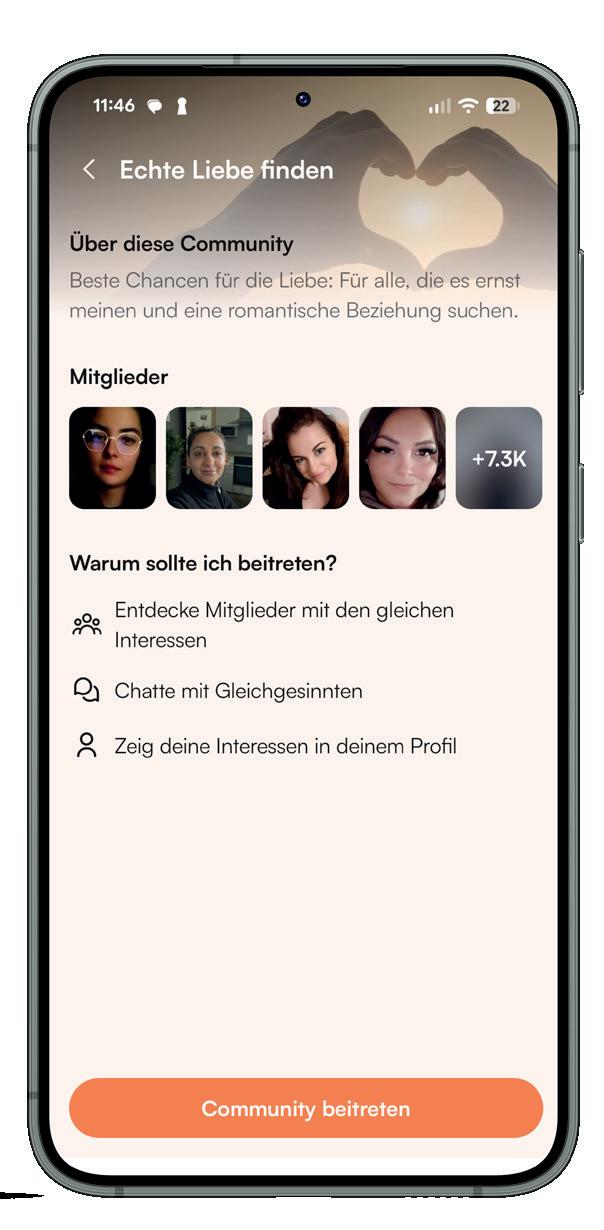 Profile zu blättern. Auf Wunsch lässt sich gezielt nach Personen in der näheren Umgebung suchen, wodurch spontane Treffen nach einem ersten Kennenlernen möglich sind. Welche Informationen Sie in Ihrem Profil teilen möchten, entscheiden Sie selbst – der Schutz der Privatsphäre hat bei Jaumo einen hohen Stellenwert. Mit dem neuen Community-Feature öffnet sich Jaumo zudem für Nutzer, die nicht ausschließlich nach Dates suchen, sondern auch neue Freundschaften knüpfen möchten. Ein weiteres, spannendes Element ist der KI-gestützte Chatbot „Matchmaker“, der dabei hilft, Gespräche leichter zu starten und Hemmschwellen abzubauen.