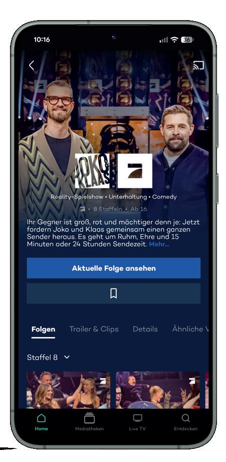 Die Streaming-App Joyn ermöglicht den Nutzern, über 100 TV-Sender bequem am Smartphone, Notebook oder Tablet live zu streamen. Die Palette reicht dabei von öffentlich-rechtlichen Sendern über Privatsender bis hin zu Sport- und Musiksendern. Das Live-Fernsehen ist allerdings nur ein Teil des Angebots. Joyn bietet auch Zugriff auf eine umfassende Mediathek mit einer Vielzahl an Serien und Shows. Außerdem können Folgen von einigen ausgewählten Serien noch vor der Ausstrahlung im Fernsehen über die Plattform konsumiert werden. Für nur 6,99 Euro pro Monat kommen Nutzer in den Genuss des Joyn Plus-Angebots. So gewährt die Abo-Variante des Dienstes den Zugriff auf noch mehr Fernsehsender, darunter sogar vier Pay-TV-Sender.
