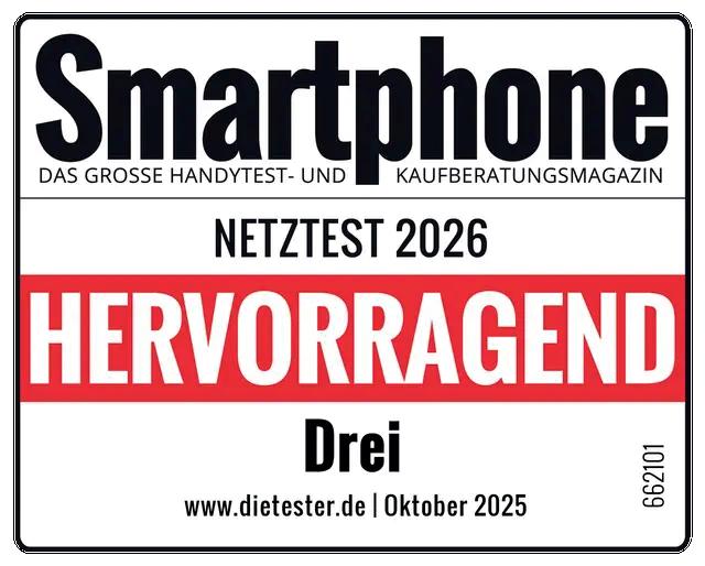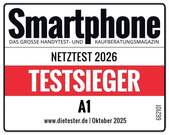 Mit einem Endergebnis von 93 % und der Gesamtnote „Hervorragend“ sichert sich A1 bereits zum elften Mal in Folge den Sieg in unserem großen SMARTPHONE Magazin Netztest 2026.