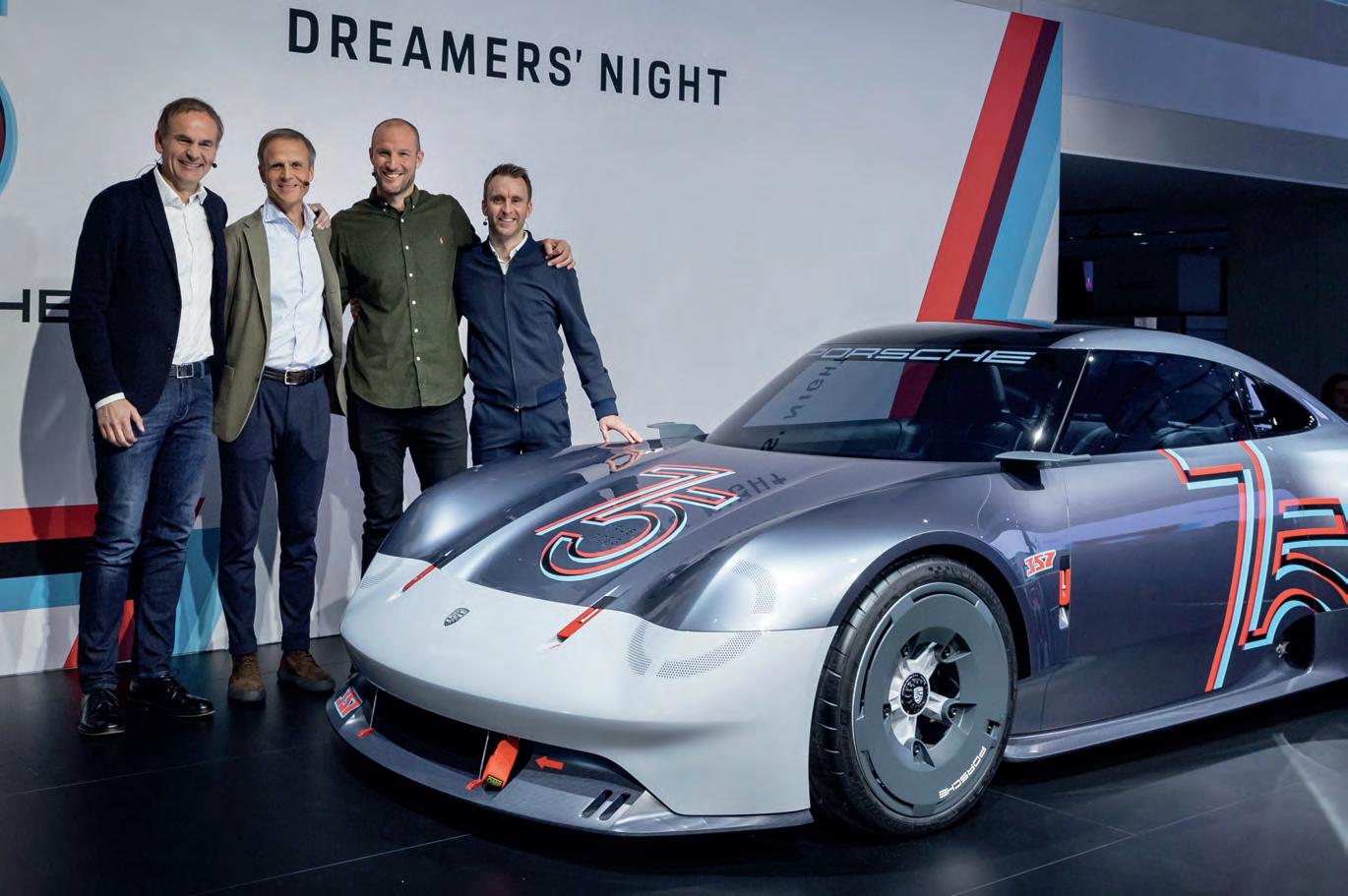 Timo Bernhard (42) war bei der Präsentation der Studie Vision 357 in Berlin einer der Protagonisten. Der höchst erfolgreiche Rennfahrer, unter anderem zweifacher Weltmeister über die Langstrecke, zweimaliger Triumphator beim legendären 24-Stunden-Rennen in Le Mans und heute Markenbotschafter von Porsche, erzählte von persönlichen Erlebnissen und seiner brennenden Leidenschaft für die Fahrzeuge aus der Edelschmiede. „Schon als kleiner Junge habe ich davon geträumt, mit einem Porsche in Le Mans zu fahren und möglichst auch zu gewinnen“, sagte Bernhard. „Umso mehr habe ich mich gefreut, als es 2017 klappte.“ Porsche ist auch in der vollelektrischen Formel E am Start.