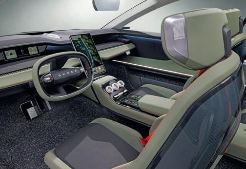 Die gesamte Innenraumausstattung be steht aus nachhaltigen, langlebigen Mate rialien. Der obere Teil des Armaturenbretts und der Türen ist in dunklem Kunstleder gehalten und von einer indirekten Am bientebeleuchtung eingefasst. Das Nach haltigkeitskonzept zieht sich bis hin zum Fußboden und Kofferraum, die vollständig aus kratzfestem Reifenrezyklat bestehen.
