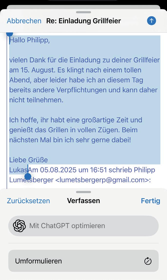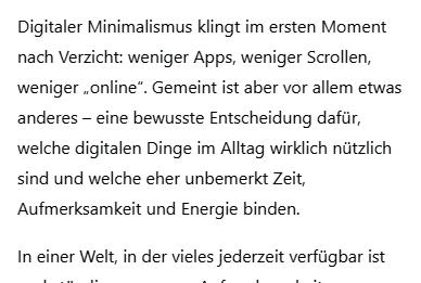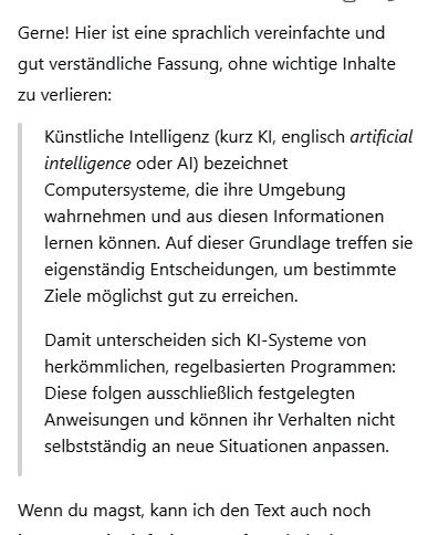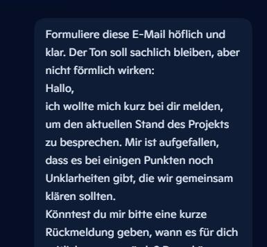 Trotz dieser Einschränkungen kann lokal laufende KI heute bereits erstaunlich viel leisten – vor allem dort, wo es um Struktur, Sprache und Ordnung geht. Besonders bei Texten zeigt sich ihr Potenzial. Offline-KI kann Inhalte umformulieren, vereinfachen oder zusammenfassen, ohne dass sensible Informationen das Gerät verlassen.
