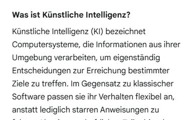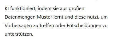 weise menschliches Denken nötig wäre. KI arbeitet mit Wahrscheinlichkeiten und Mustern – nicht mit Bewusstsein.