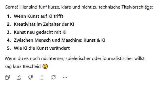 Was KI bereits ziemlich gut beherrscht, sind bestimmte Arbeiten im Kreativbereich. So ist es ein Kinderspiel, etwa von ChatGPT innerhalb von Minuten ansprechende Grafiken nach Vorgabe zu zaubern.