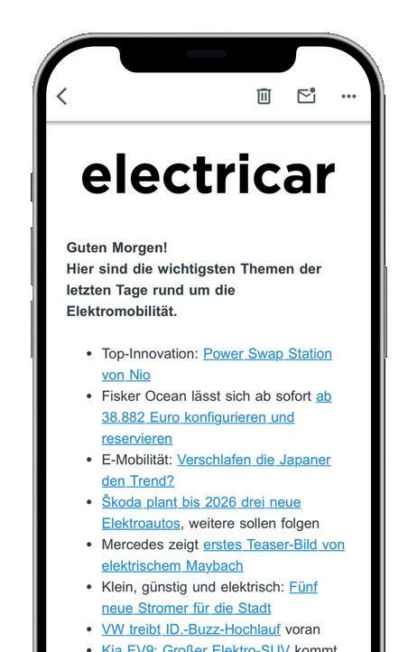 Scan me! Das electricar Briefing erscheint aktuell wöchentlich. Entscheiden Sie selbst, welche Themen Sie interessieren und wo Sie gerne weiterlesen möchten. Beim nächsten Office- oder Kunden-Smalltalk geben Sie mit diesen News die Themen vor.