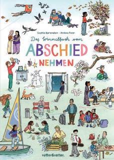 Palliativmedizinerin Sophia Bartenstein und Illustratorin Andrea Peter wollen mit dem „Wimmelbuch vom Abschiednehmen“ das Sprechen über den Tod erleichtern. In sechs großformatigen Suchbildern durchleben ihre Figuren Phasen und Rituale der Trauer, erfahren dabei aber auch immer wieder schöne Begegnungen mit ihren Mitmenschen und Momente von Freude, Ho nung und Trost – und bringen uns so mit unterschiedlichen Themen rund ums Abschiednehmen in Berührung. vatterundvatter.de |