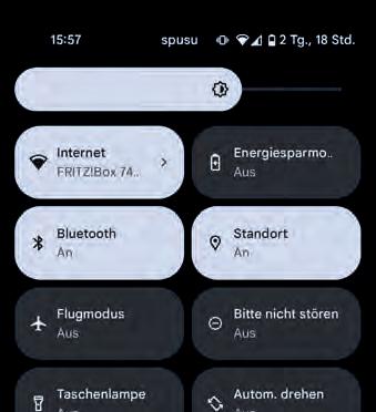 Ein Wisch von der oberen Displaykante nach unten genügt, schon werden Ihnen Schnelleinstellungen sowie die Benachrichtigungen angezeigt.