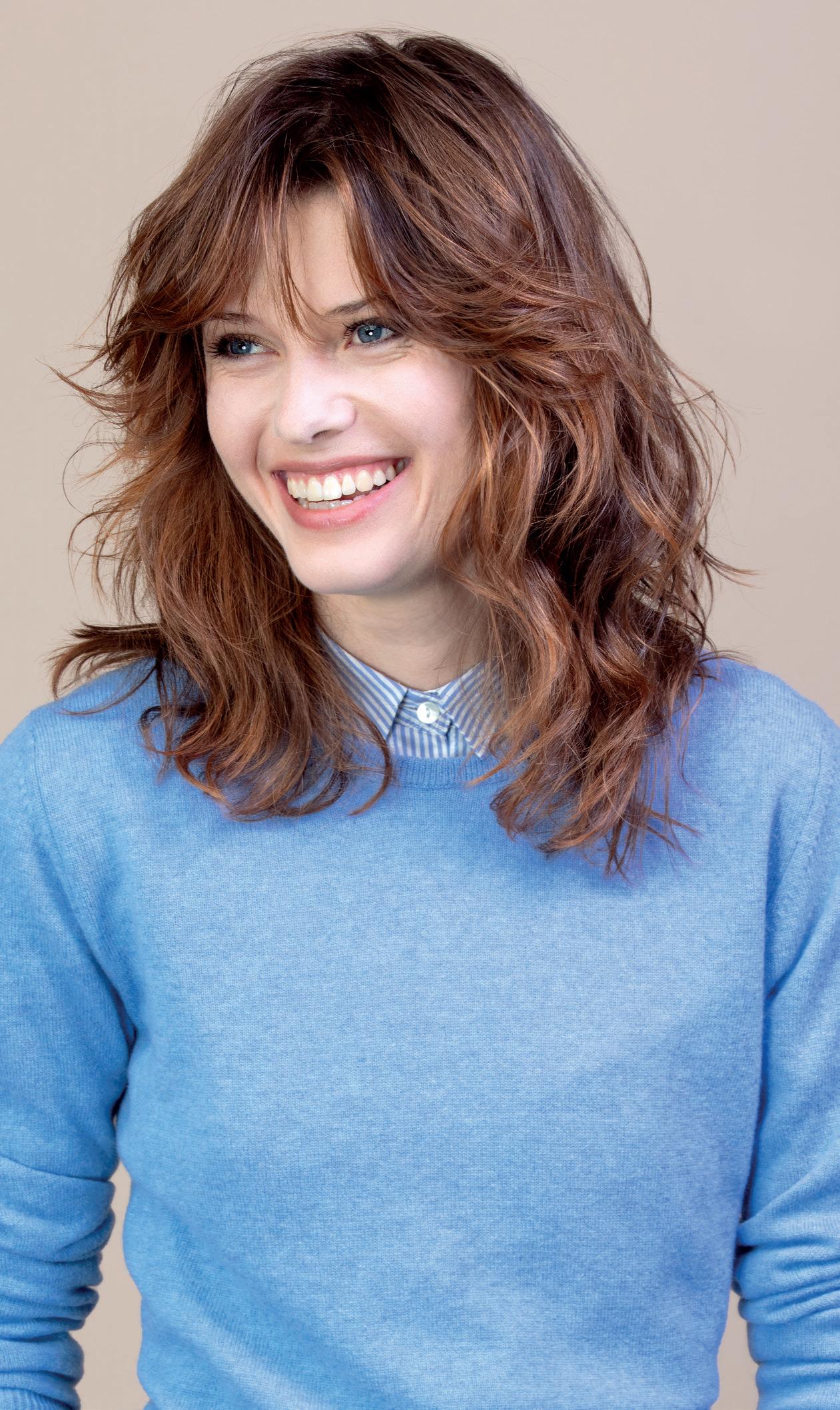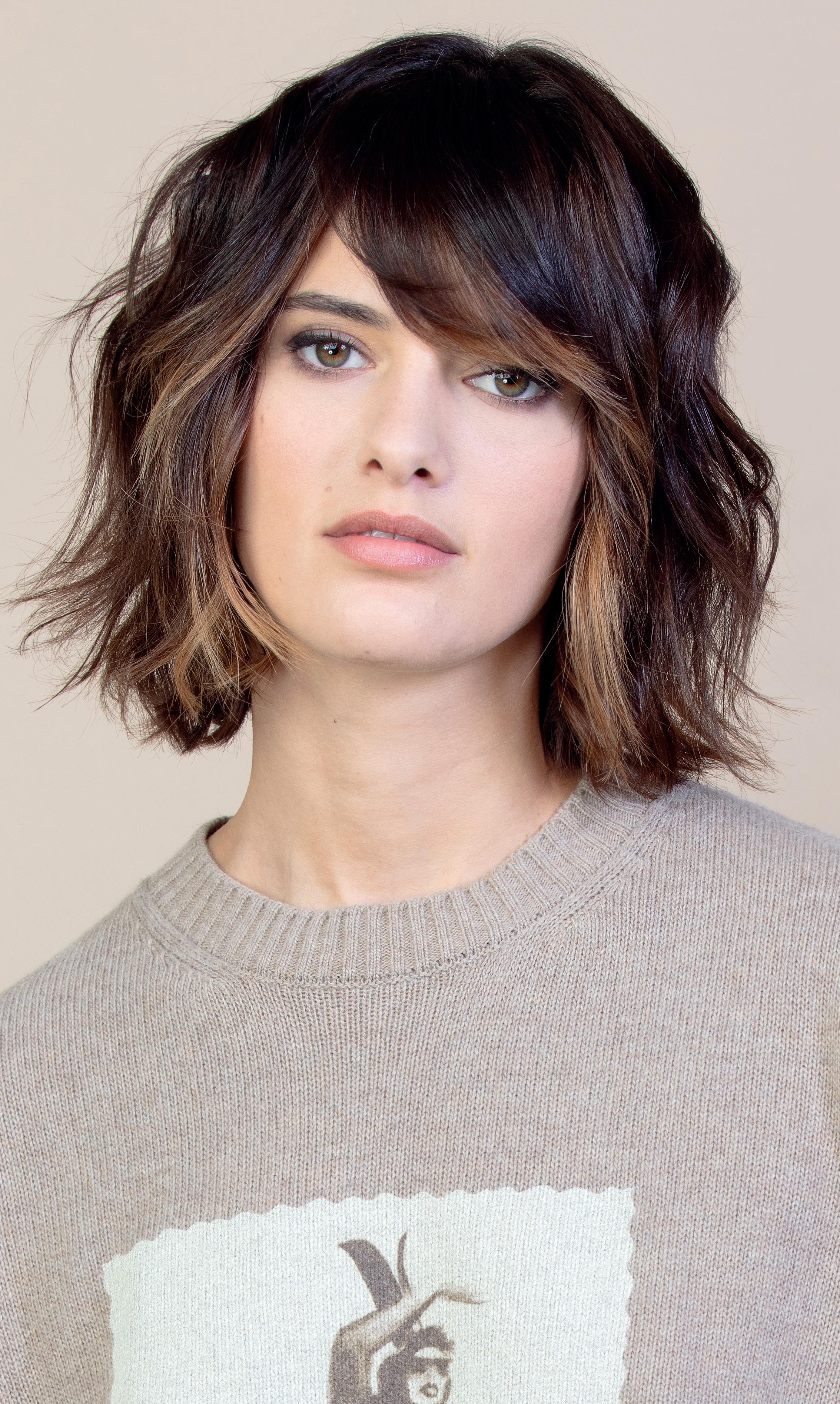 A clever detail, fringed just enough to give structure and movement to the hair, focusing on medium lengths that extend a few centimeters beyond the shoulders and collarbones. It manages to adapt to almost all face shapes thanks to the balanced proportion between layering and fullness. Ideal for well-proportioned oval faces.