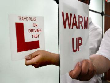 During the warm-up, a simple “L” plate is used. Before a learner driver undergoes the practical test, the warm-up instructor has to switch the “L” plate to a separate “On Driving Test L” plate.