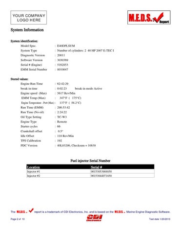 Marine Engine Diagnostic Software. Test date 1/20/2013