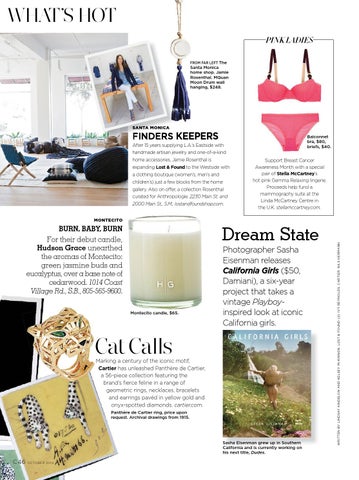 BURN, BABY, BURN For their debut candle, Hudson Grace unearthed the aromas of Montecito: green jasmine buds and eucalyptus, over a base note of cedarwood. 1014 Coast Village Rd., S.B., 805-565-9600.