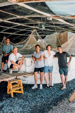 Anchored off Espíritu Santo Island, Mexico. Far right: Omega Blue’s JAMES ARTHUR SMITH with SAM COOPER SAM TRUDE JUAN FERREIRO and JAXON DOBSON.