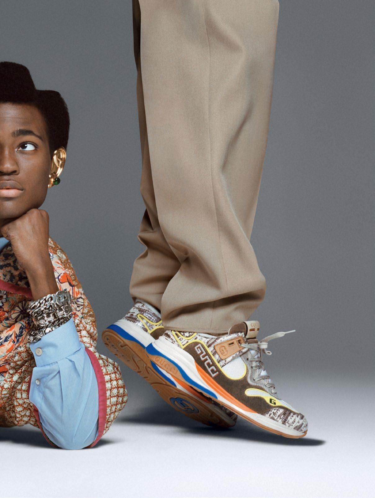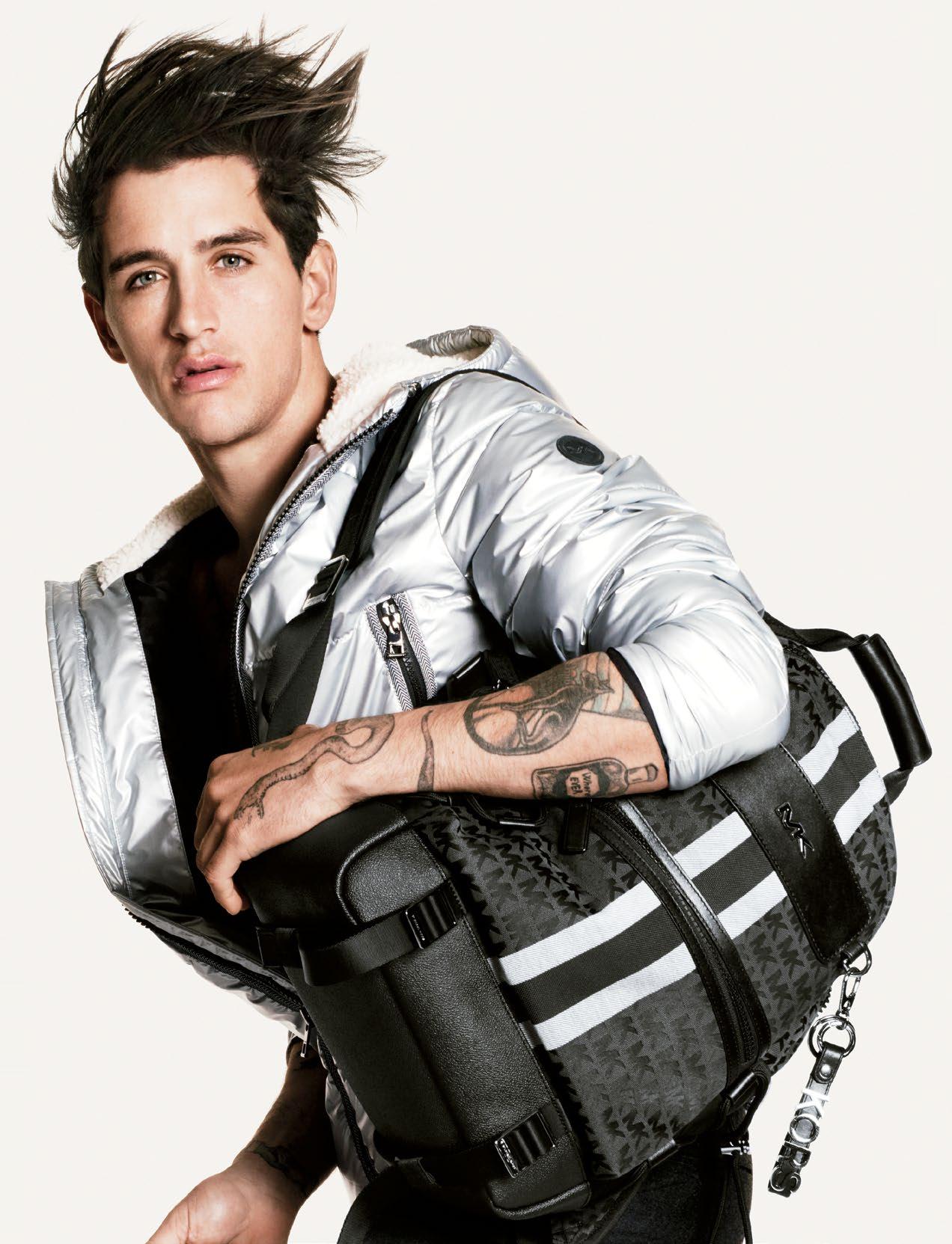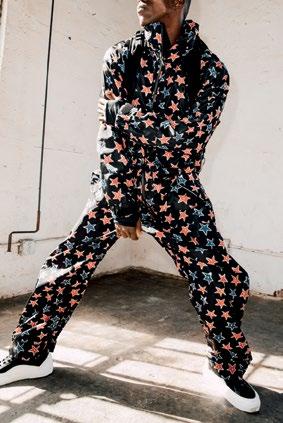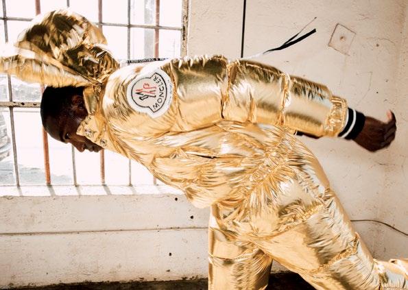 p.40 Louis Vuitton Men Flags dip dye bandana denim shirt, $6,255, and dip dye slim denim pants, $1,465, Louis Vuitton, Beverly Hills, 310-859-0457; louisvuitton.com. 3.1 Phillip Lim Suiting jumpsuit, $995; 31philliplim.com. Fendi Karlcollage shirt, $995, and Fendi Karlcollage nylon baguette bag, $2,39; fendi.com. Amiri bandana buckle boots, $1,390; amiri.com. 8 Moncler Palm Angels metallic jumpsuit, price upon request; moncler.com. Gucci brown brick-beige dyed cotton canvas jumpsuit, $2,400, Gucci, Beverly Hills, 310-278-3451; gucci.com. Timberland Men’s 6-inch premium waterproof boots in wheat nubuck, $198; timberland.com. Salvatore Ferragamo wool jumpsuit, price upon request, and Nabuk alpaca fabric and grosgrain hiking boots, $1,150; ferragamo.com. Gucci blue velvet GG backpack with black leather trim and metal Double G detail, $1,980, Gucci, Beverly Hills, 310-278-3451; gucci.com. 3 Moncler Grenoble Starred ski-suit in nylon, price upon request, and 7 Moncler Fragment Hiroshi Fujiwa backpack, $1,005; moncler.com. Jimmy Choo black suede with white soft leather low top sneakers, similar styles available, $495; jimmychoo.com.