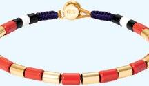 p.26 Roxanne Assoulin men’s gilded U-Tube bracelet in brick; $75; roxanneassoulin.com. Chan Luu matte African turquoise single wrap bracelet, $75, Chan Luu, Century City, 424-313-8505; chanluu.com. David Yurman woven bracelet in navy nylon with black onyx, $375; davidyurman.com. Tod’s Mycolors bracelet in orange and grey leather, $225, tods.com.