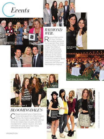 magazine hosted Fashion’s night out at the Elements department of Bloomingdale’s Century City. Guests enjoyed glasses of Simi Winery Sauvignon Blanc with patina Catering’s shrimp and mango crisps, tuna poke, and white chocolate-lemon verbena macarons. A DJ, tarot card reader and candy bar by Alice + olivia entertained late into the night.