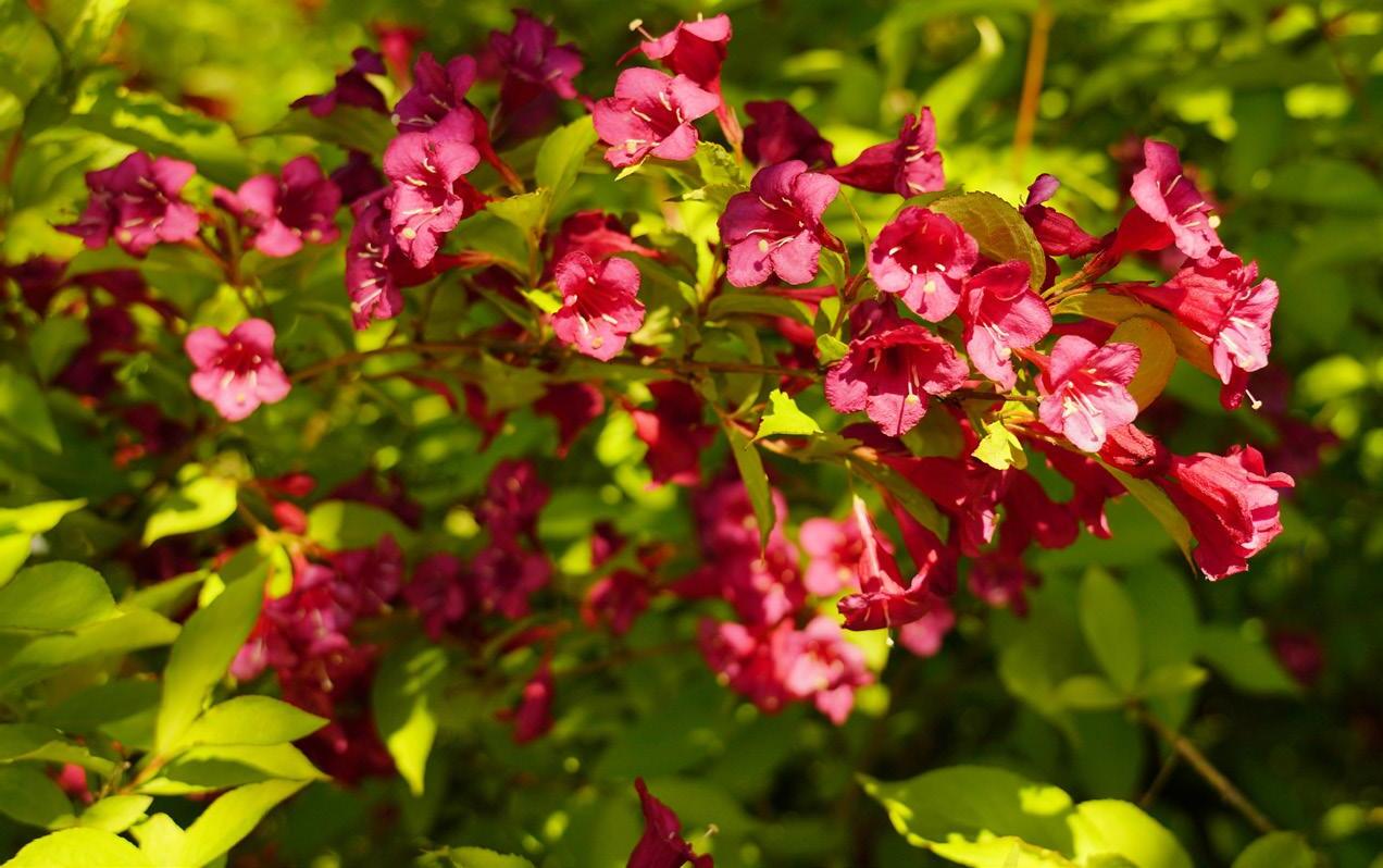 Arbuste au port arrondi, floraison rouge vif en début d’été. | Rounded flowering shrub with vivid red early-summer blooms. Reg 1895$ PROMO 1394