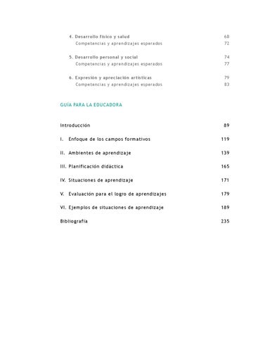 4. Desarrollo físico y salud Competencias y aprendizajes esperados 5. Desarrollo personal y social Competencias y aprendizajes esperados 6. Expresión y apreciación artísticas Competencias y aprendizajes esperados