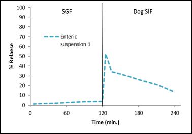 • Solid dispersion composition (polymer type, ratio, solubilizer concentration etc.) and reconstitution media composition were optimized using two stage dog bio relevant dissolution.