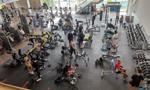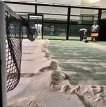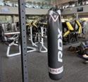 Colocación de una gran superficie con suelo de goma para la próxima zona de trabajo de fuerza, junto a una pared completa de espejos Incorporación del saco en la jaula.