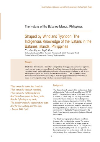 Shaped by Wind and Typhoon: The Indigenous Knowledge of the Ivatans in the Batanes Islands, Philippines Noralene Uy and Rajib Shaw